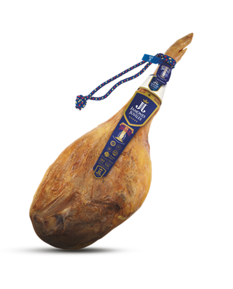Jamón de pata I.G.P. Trevélez, con más de 17 meses de curación natural a 1250 metros de altitud en el Parque Natural de Sierra Nevada. Sin aditivos ni conservantes, bajo en sal, sin gluten ni lactosa. Certificado por el Consejo Regulador del Jamón de Trevélez. Ingredientes: Jamón y sal marina. Origen: España.