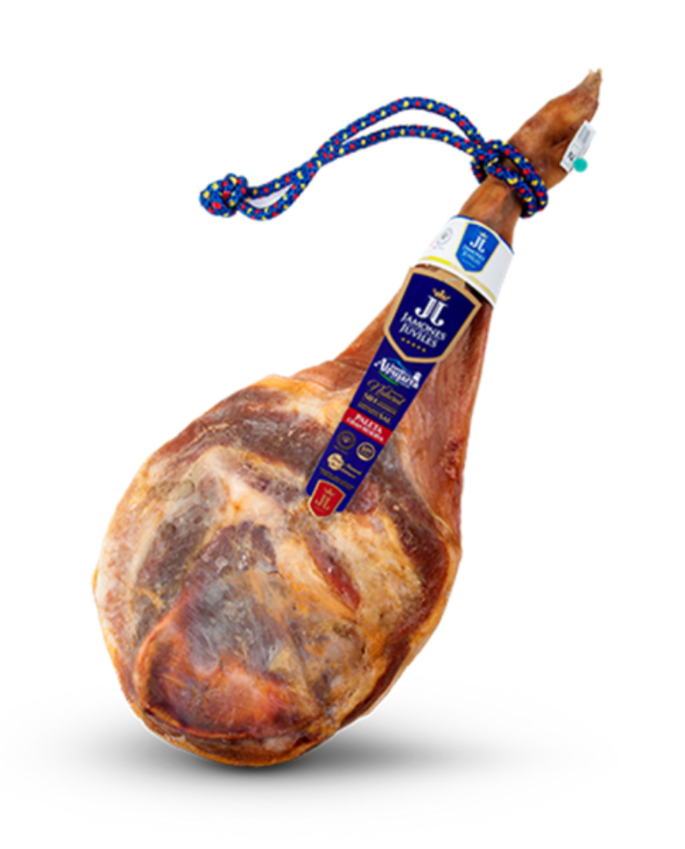 Los jamones Gran Corona Juviles se curan de manera artesanal y completamente natural durante más de 24 meses, sin conservantes ni nitrificantes, utilizando únicamente sal marina.