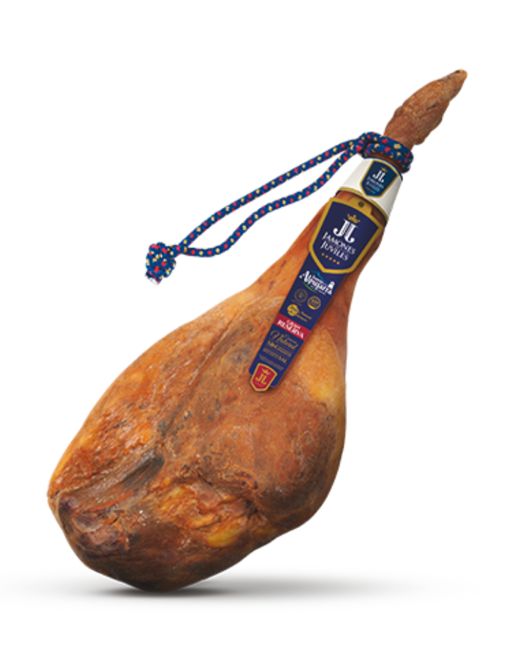 Jamón de pata Reserva Alpujarra, con más de 18 meses de curación natural a 1250 metros de altitud en el Parque Natural de Sierra Nevada. Sin aditivos ni conservantes, bajo en sal, sin gluten ni lactosa. Certificado por la Marca de Garantía de la Alpujarra. Ingredientes: Jamón y sal marina. Origen: España.